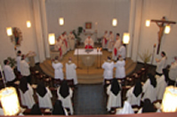 Vor 8 Jahren ist Hans Hermann Card. Groër heimgegangen. Aus diesem Anlass wurde am 24. März, dem Vorabend des Verkündigungsfestes, die schon traditionell gewordene Gedenkmesse gefeiert, die zahlreiche Priester und Kleriker sowie eine große Volksmenge zum gemeinsamen Gebet vereinigte, - ein Zeichen dafür, dass Wertschätzung und Dankbarkeit nicht nur nicht ausgestorben, sondern sogar im Wachstum begriffen sind. Als Hauptzelebrant deutete der Prior des Klosters St. Josef in Maria Roggendorf, P. Michael Fritz OSB, die „Goldenen Verse“ des Lukasevangeliums aus und betonte in seiner Homilie die Initiative Gottes wie ebenso die Freiheit des Menschen, der zur Antwort gerufen ist. Unter vielen anderen Mittlern in der Gnadenökonomie hat auch „P. Hermann“ als Bote der Berufung immer die Freiheit der Gerufenen respektiert: Viele können es so bezeugen. Der Eucharistiefeier folgte die Andacht an der Grabstätte und die Begegnung mit Schwestern und Bekannten in den Sprechzimmern der Abtei: eine große Familie, die sich mit ihrem geistlichen Vater verbunden weiß.
